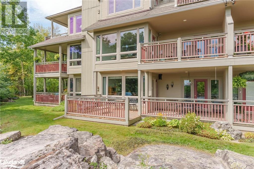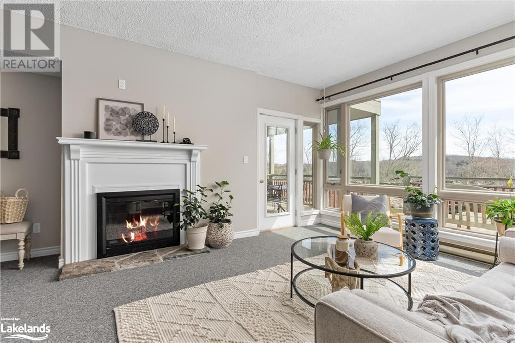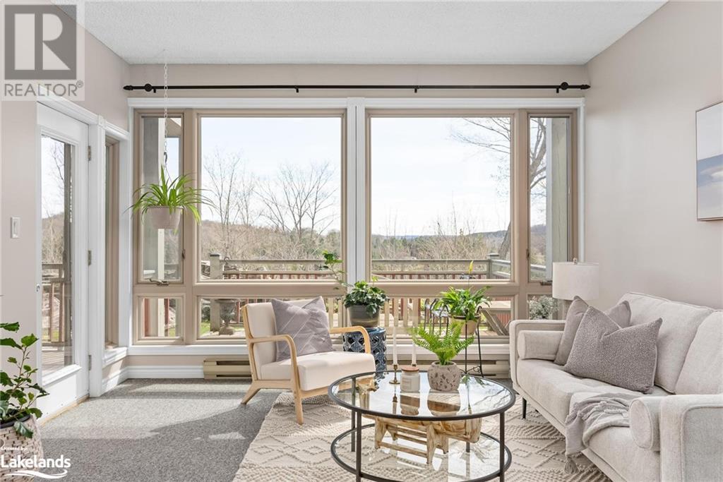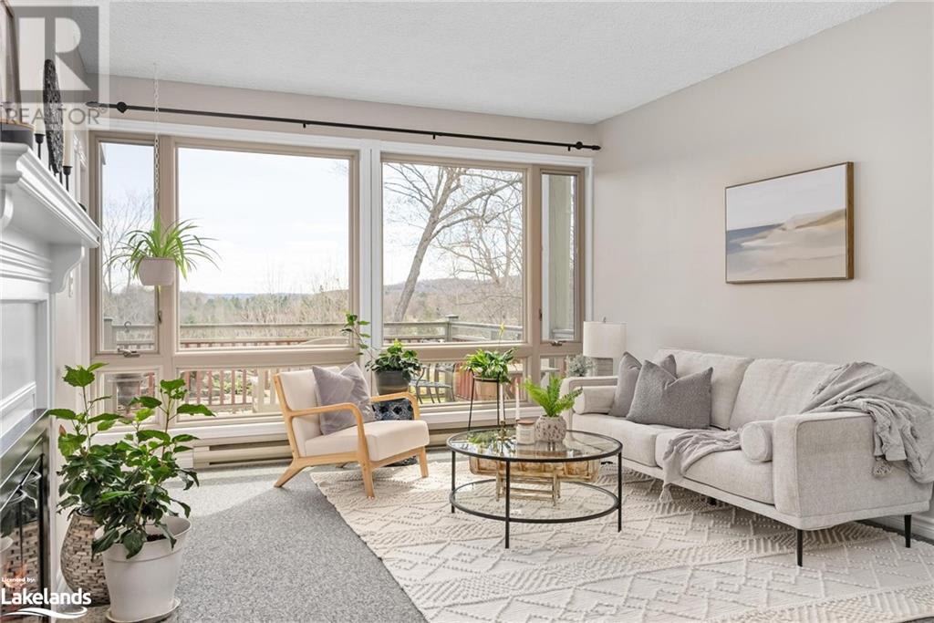 Beautiful one bedroom + den, two-bathroom Grandview Forest Glen condo is just 10 minutes to downtown Huntsville and has access to Fairy Lake for swimming or canoeing/kayaking. Lovely walking trails and forest are very close to the parking area. Close to Hidden Valley Ski area, Algonquin Park, and several world class golf courses. Floor to ceiling windows in Living Room and Primary Bedroom overlook gorgeous Muskoka rock outcrop, golf course and bay of Fairy Lake. Very private view.