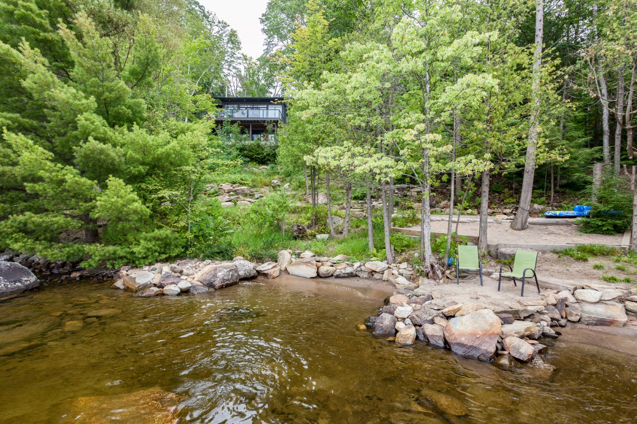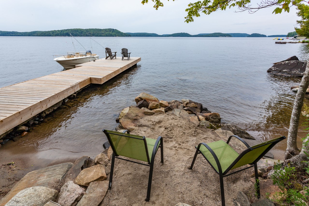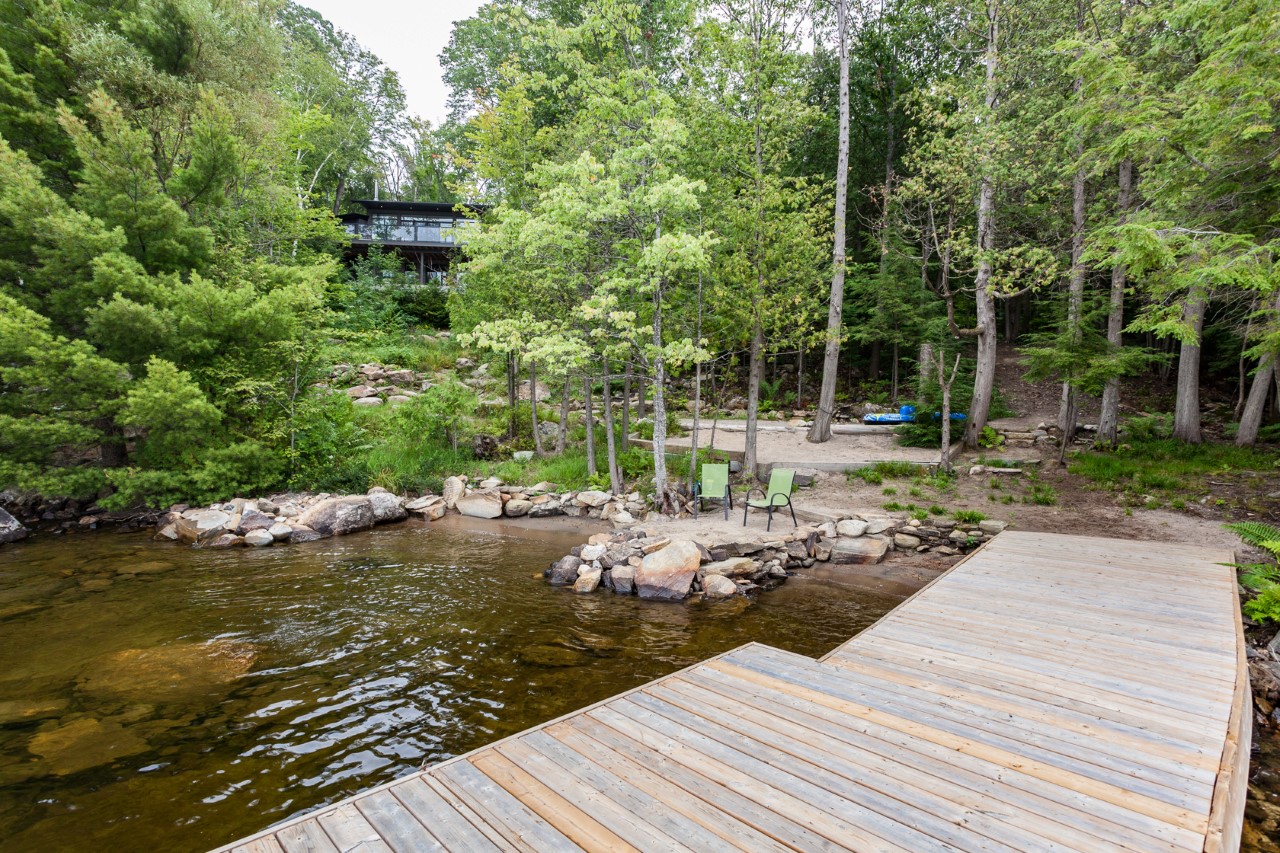 Love the modern look? This gorgeous 4 bedroom, 3 bathroom beauty offers west exposure, kid-friendly sandy shore, deeper water at end of the dock, and superb privacy on 1.32 acres. Top quality throughout with impeccable decorating. Heated floors in 3 pce and 4 pce baths. Hardwood floors and eleven foot ceilings in open concept living/dining/kitchen, panoramic lake views, walkout to deck. Lower level has walkout to private patio area. Gently sloping path to water`s edge as well as granite steps make the shoreline easy to access. Newer dock system, spectacular sunsets. Double detached garage. Located on the south shore less than two hours to the GTA. Shopping in nearby Baysville yet on the open part of the lake. Rebuilt in 2013 on the original foundation with feng shui in mind this beautiful home or cottage has a lovely feeling of positive energy. Have a look, you`ll love it!