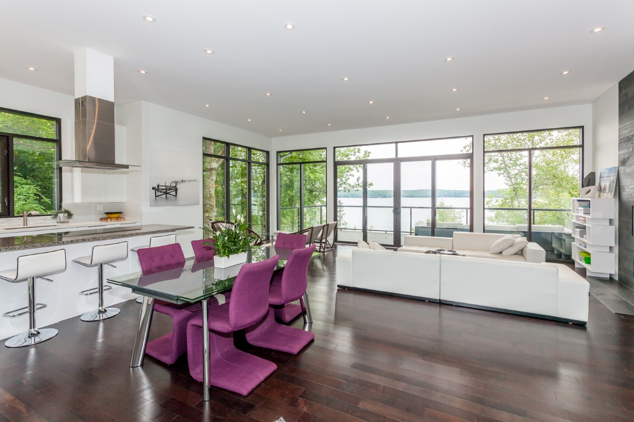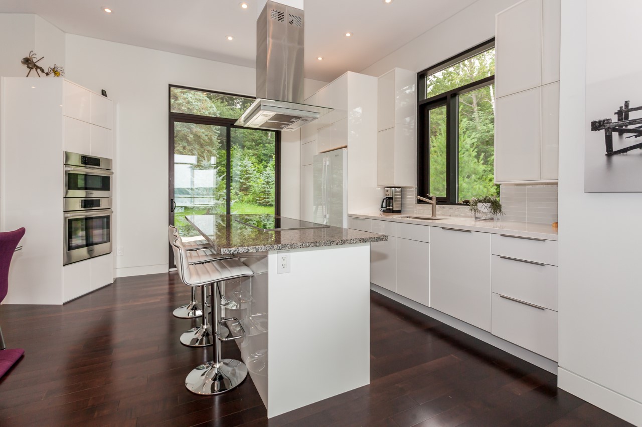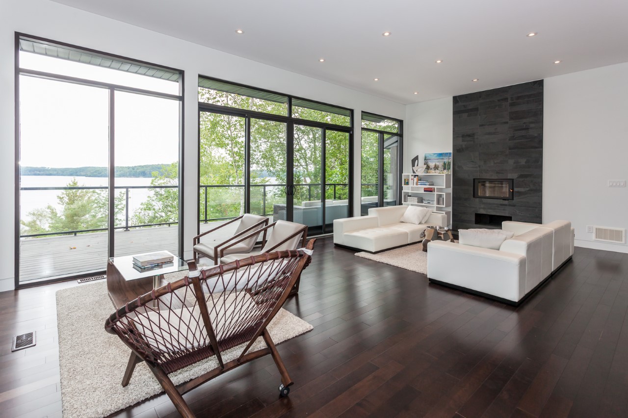 Love the modern look? This gorgeous 4 bedroom, 3 bathroom beauty offers west exposure, kid-friendly sandy shore, deeper water at end of the dock, and superb privacy on 1.32 acres. Top quality throughout with impeccable decorating. Heated floors in 3 pce and 4 pce baths. Hardwood floors and eleven foot ceilings in open concept living/dining/kitchen, panoramic lake views, walkout to deck. Lower level has walkout to private patio area. Gently sloping path to water`s edge as well as granite steps make the shoreline easy to access. Newer dock system, spectacular sunsets. Double detached garage. Located on the south shore less than two hours to the GTA. Shopping in nearby Baysville yet on the open part of the lake. Rebuilt in 2013 on the original foundation with feng shui in mind this beautiful home or cottage has a lovely feeling of positive energy. Have a look, you`ll love it!