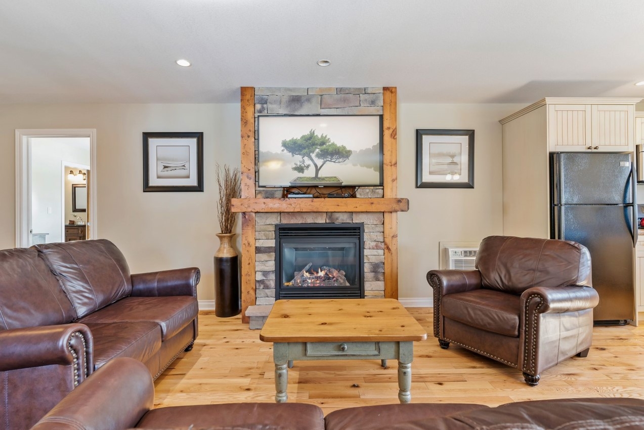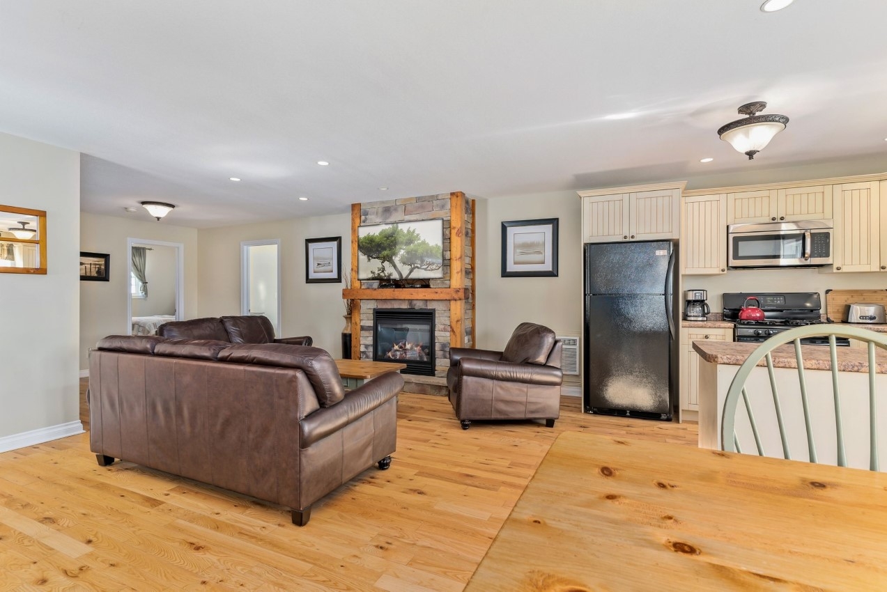 Blue Water Acres fractional ownerships resort has almost 50 acres of Muskoka paradise and 300 feet of South facing frontage on Lake of Bays. The 112 Meadowvale THREE BEDROOM cottage is one of the nicest at the resort and has a lovely view of the lake. All cottages have a propane fireplace.