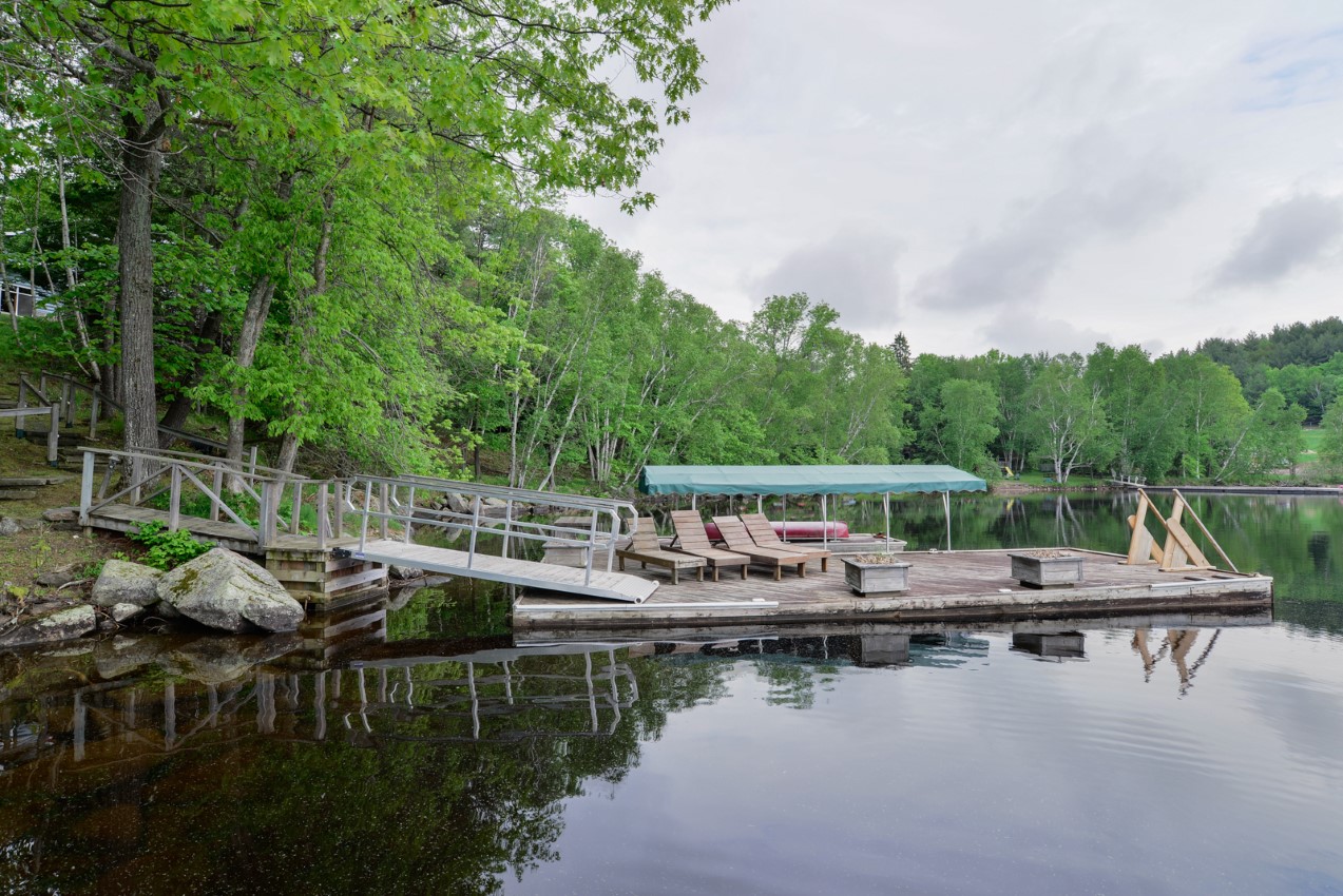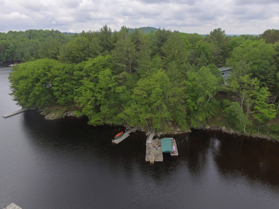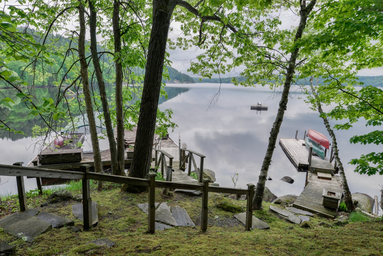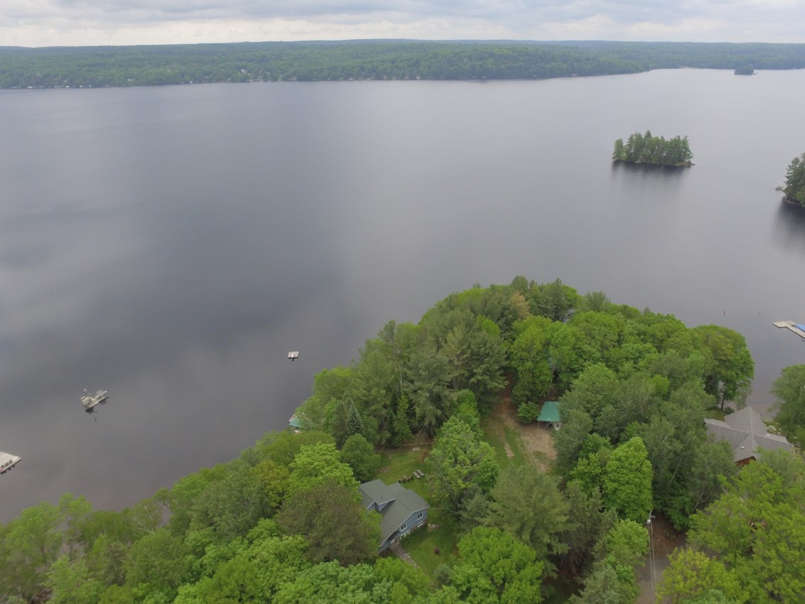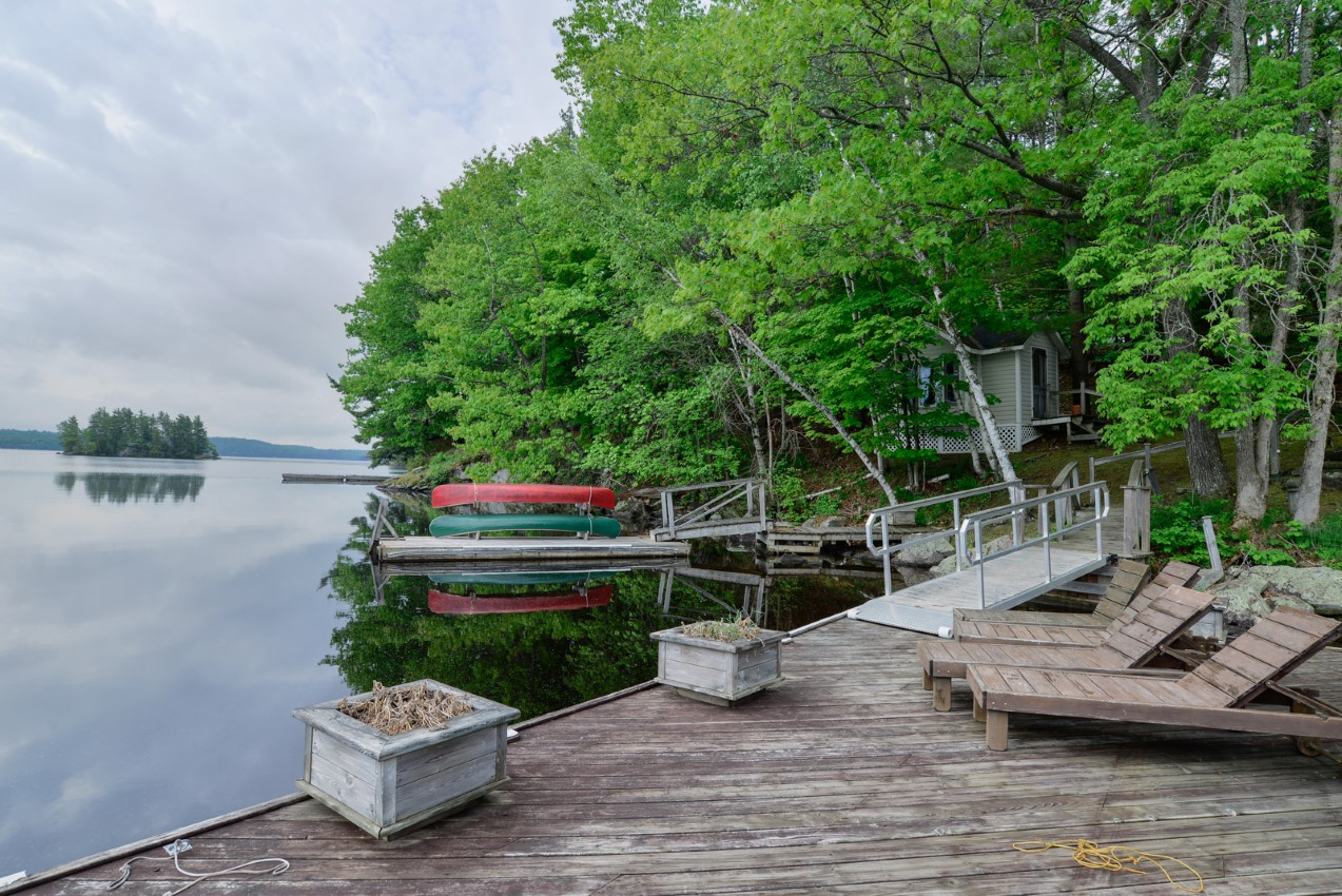 This gorgeous property has 330 ft frontage, just under an acre of land, is level at the parking area and gently sloping to the waterfront. Wonderful long view across the lake to granite cliffs, southeast exposure, lots of sun. Superb privacy. Shoreline is rocky at the docks but there is also a shallow, sandy area at the north end of the property.