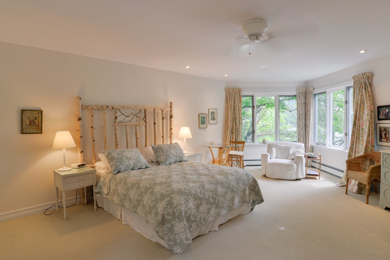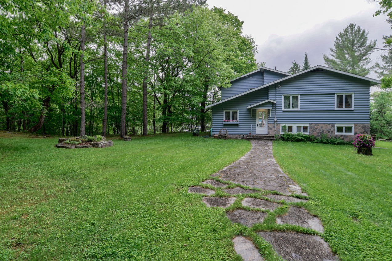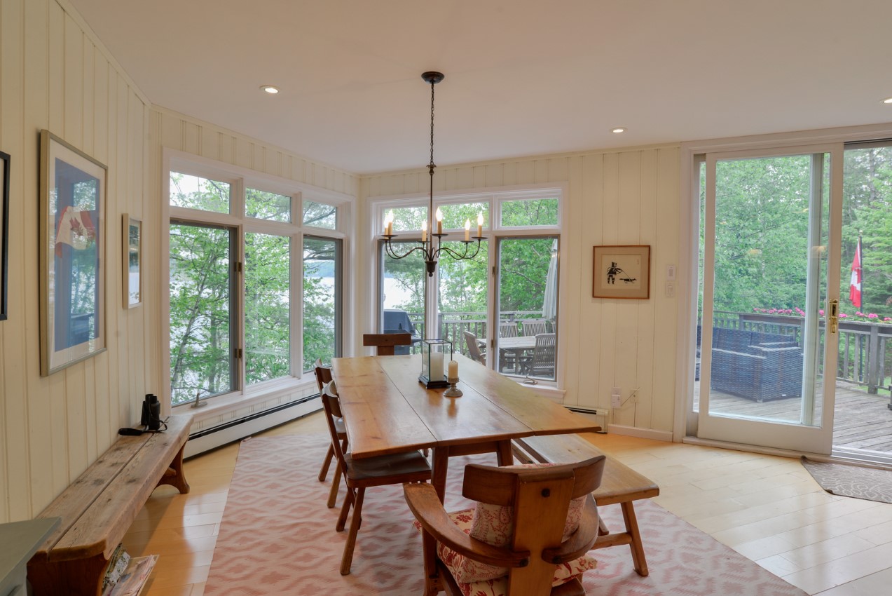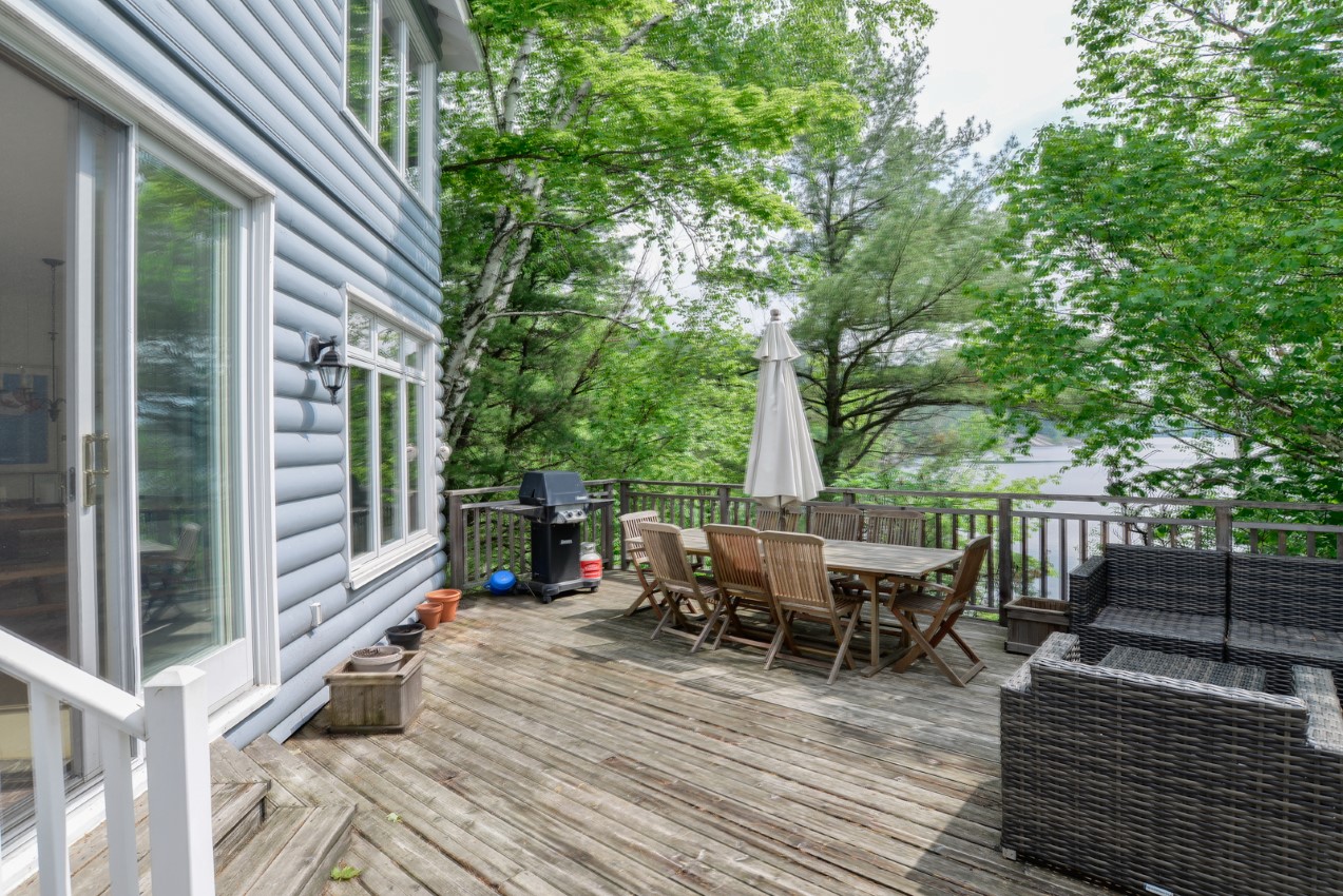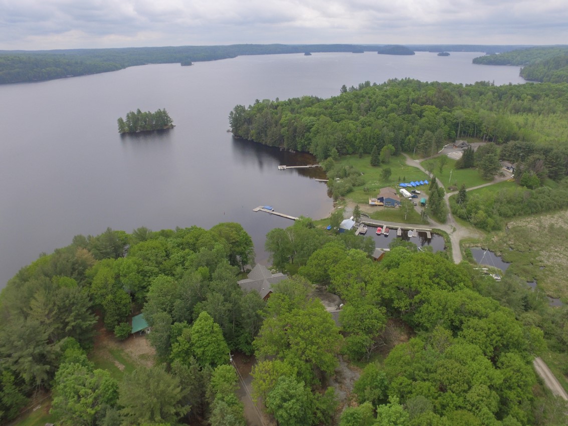 This gorgeous property has 330 ft frontage, just under an acre of land, is level at the parking area and gently sloping to the waterfront. Wonderful long view across the lake to granite cliffs, southeast exposure, lots of sun. Superb privacy. Shoreline is rocky at the docks but there is also a shallow, sandy area at the north end of the property.