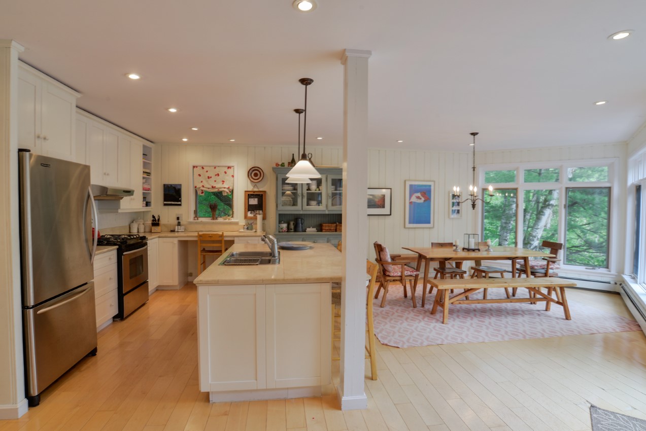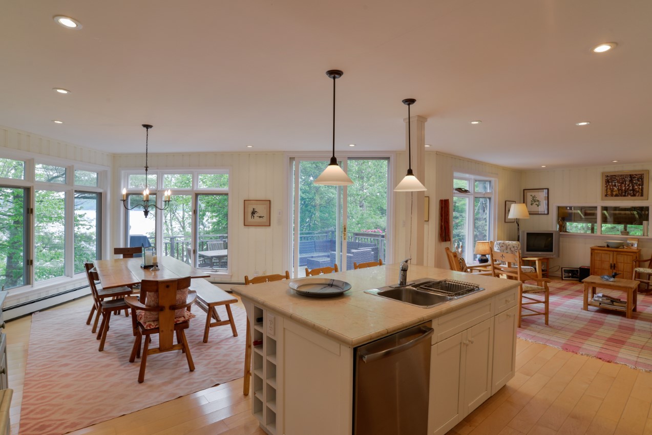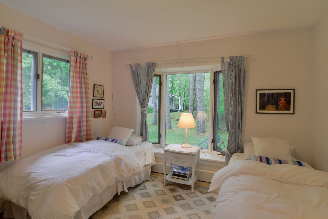 Cottage itself is fully winterized, easy year round access, heat is propane fired radiant, original foundation in 1956 but cottage was renovated and updated in 2006. Five bedrooms (although septic is approved for only 4 bedrooms), 3 full baths, about 2500 sq. ft. total, on 4 levels with easy stairs to each level. There is a bedroom & full bath on main floor for one floor living if needed. Walkout to deck overlooking the lake. 2 bunkies for overflow guests. This property is a rare gem!