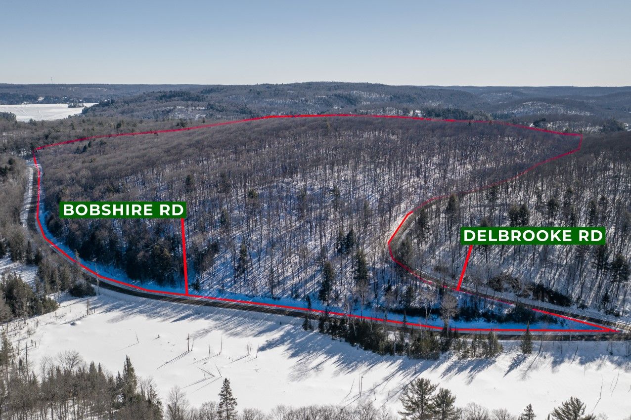 Rare opportunity on Lake of Bays. Ninety-two acres of privacy and almost 106 ft of southwest facing shoreline. The subject property has Delbrooke Road on the west side, Bobshire Road on the northeast side, and a road allowance with a newly built road on the southeast side and forms a triangular shape with the point of the triangle being the waterfront.