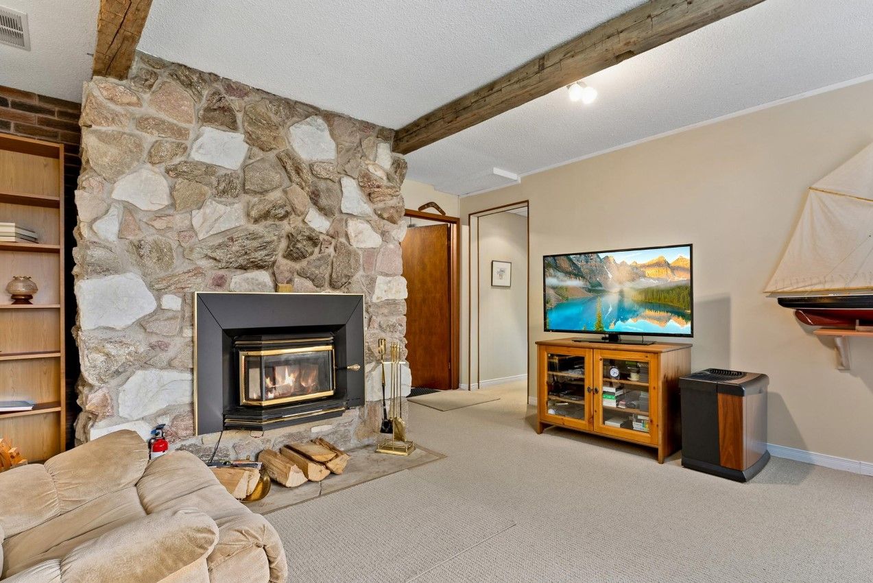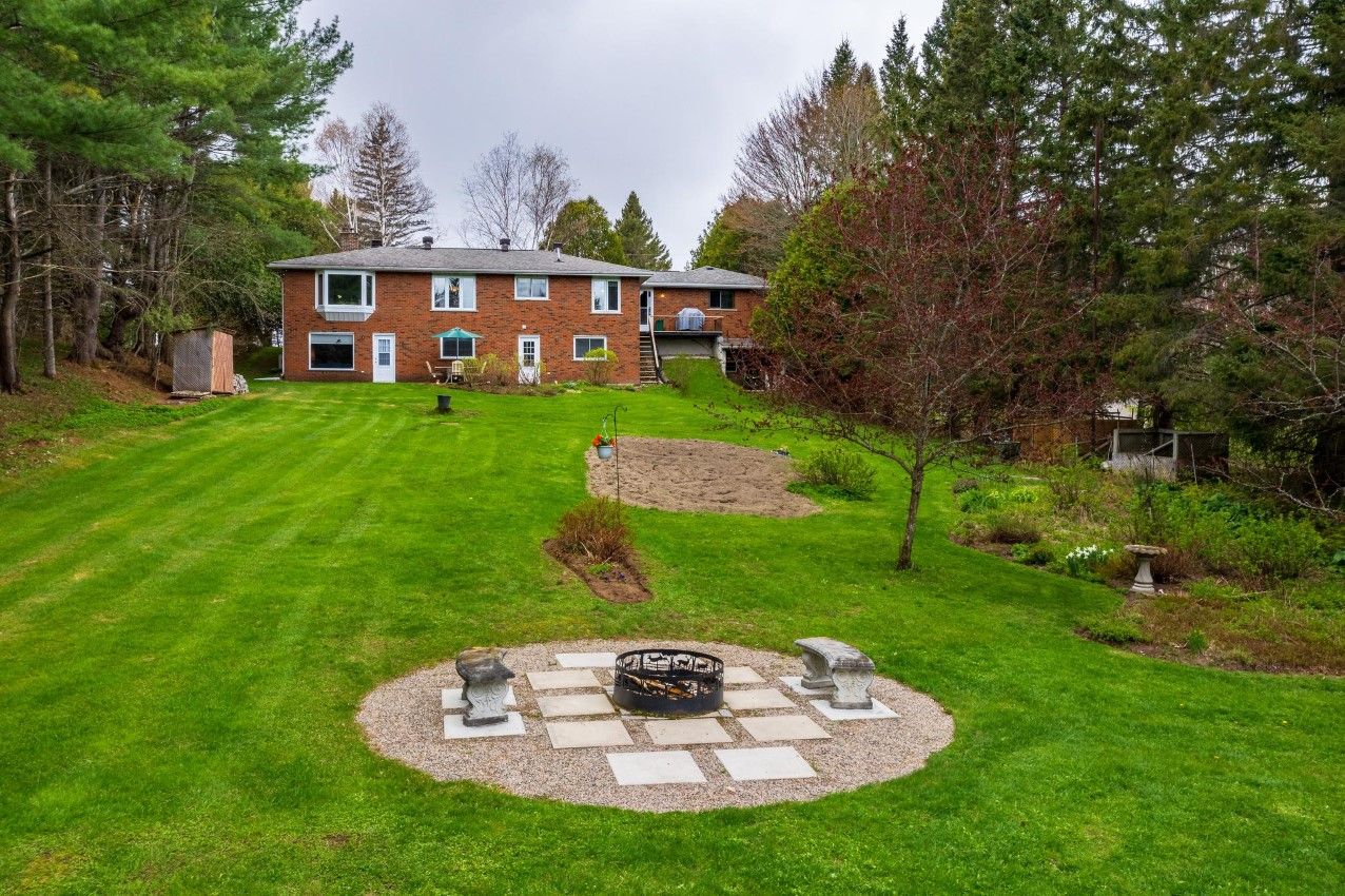 Bright, spacious open concept main floor with breakfast nook, two bedrooms, laundry and 4 piece bathroom. One floor living is possible in this lovely riverfront home. The lower level with walkout to the backyard has two more bedrooms, bathroom and a rec room with commanding stone fireplace with high efficiency insert and a small wired office area. Large storage area on lower level of about 400 sq. ft. Grow your own organic veggies in the sunny backyard. The garden is already there! This wonderful family home is a short drive to downtown Huntsville.