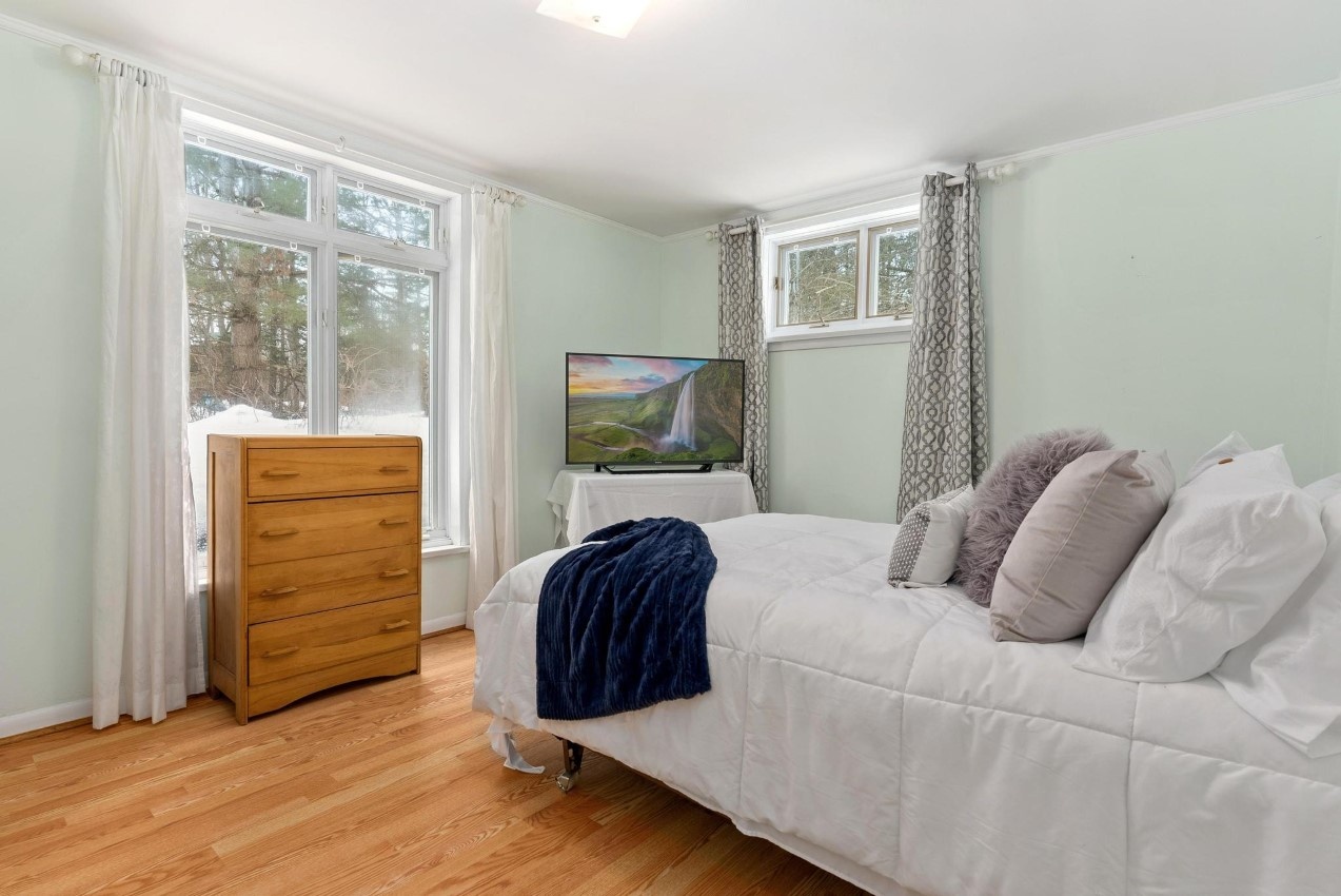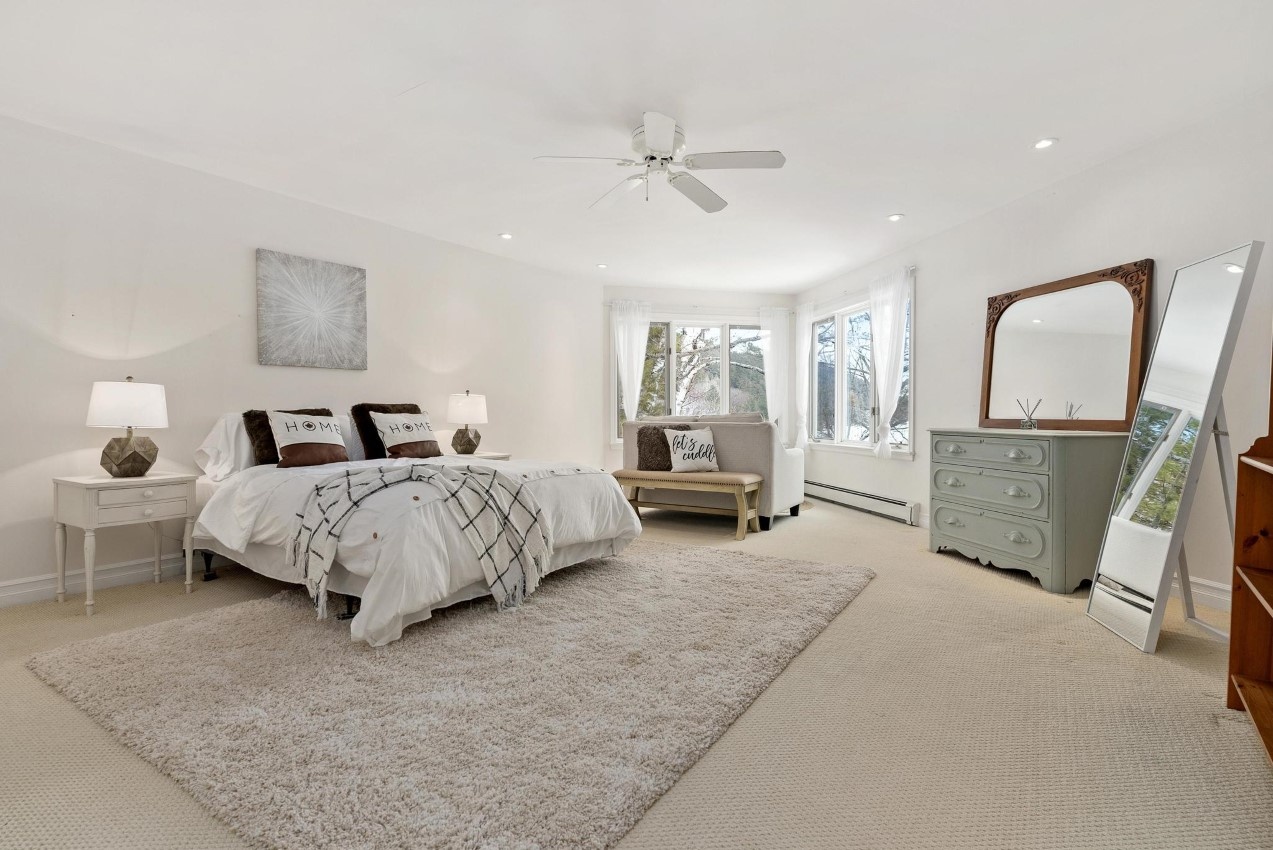 Mary Lake is clean, deep, not too built up and is one of the larger lakes in this part of Muskoka. Located just 10 minutes (or less) to historic downtown Huntsville and 2 minutes to Hwy 11 for an easy 2-hour commute to the GTA, this four-season cottage or home has been both a personal retreat and a short-term rental earning approximately $50,000/year on Airbnb. The present owners have also thought of rebuilding their dream home on this spectacular lot: 330 feet of private southeast-facing shoreline, level to gently sloping land, both shallow and deeper water, about 8 feet deep off the dock, long lake views, both sandy and rocky shoreline, and 1.3 acres of privacy.